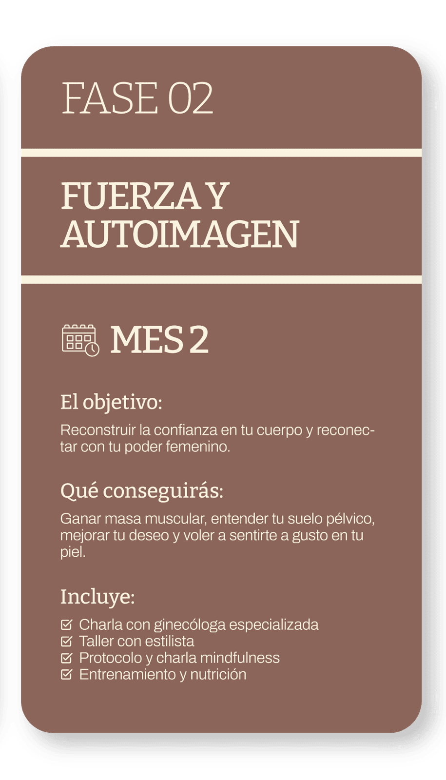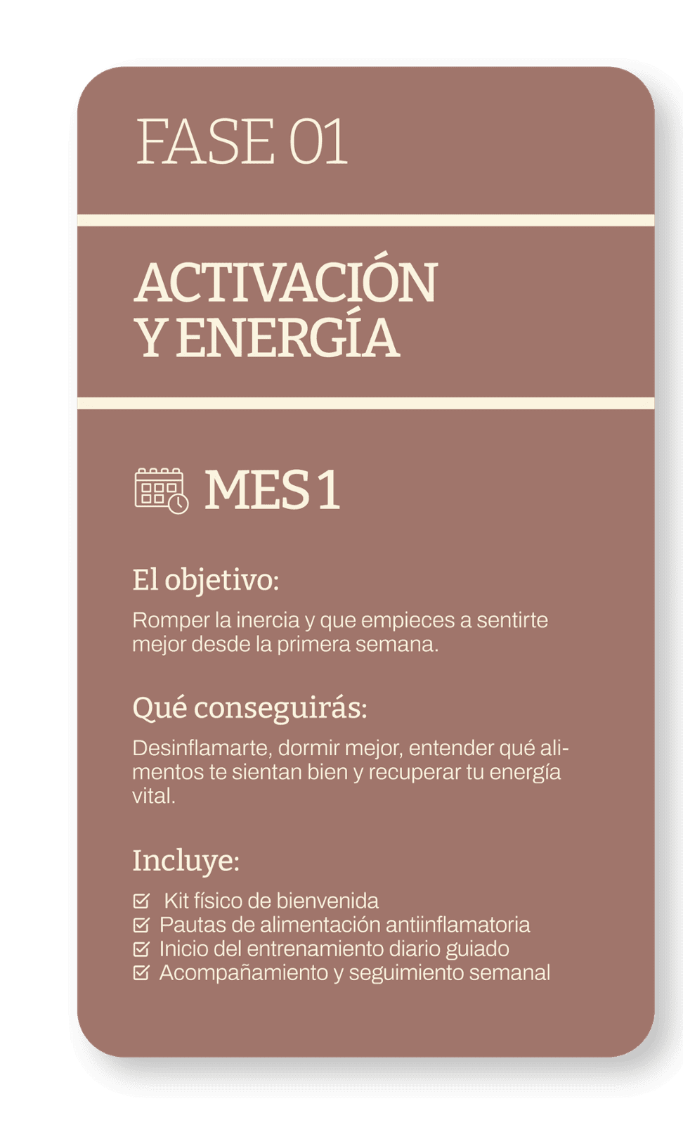 El único programa integral que te acompaña para que entiendas tu cuerpo, recuperes tu energía y lideres esta nueva etapa. Sin dietas, sin promesas vacías, con resultados reales.